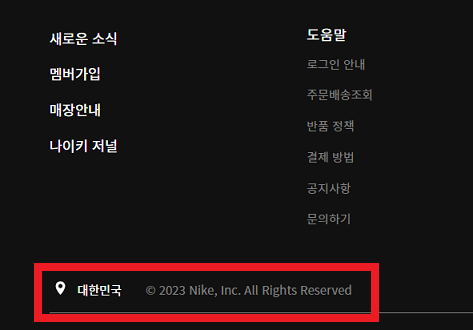 1. 나이키 직구를 위해서 위 홈페이지로 들어가 줍니다. 한국에서는 Nike 코리아 홈페이지가 바로 연결되는데요. 미국 공식 홈페이지로 변경을 위해 홈페이지 하단에 있는 위치를 클릭 후 Americas, United States로 변경해 줍니다.